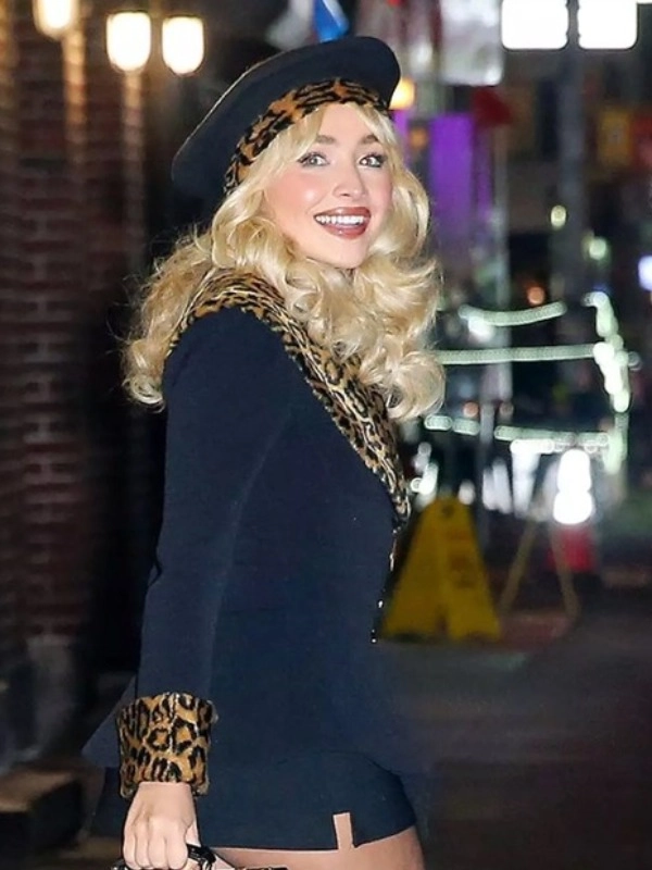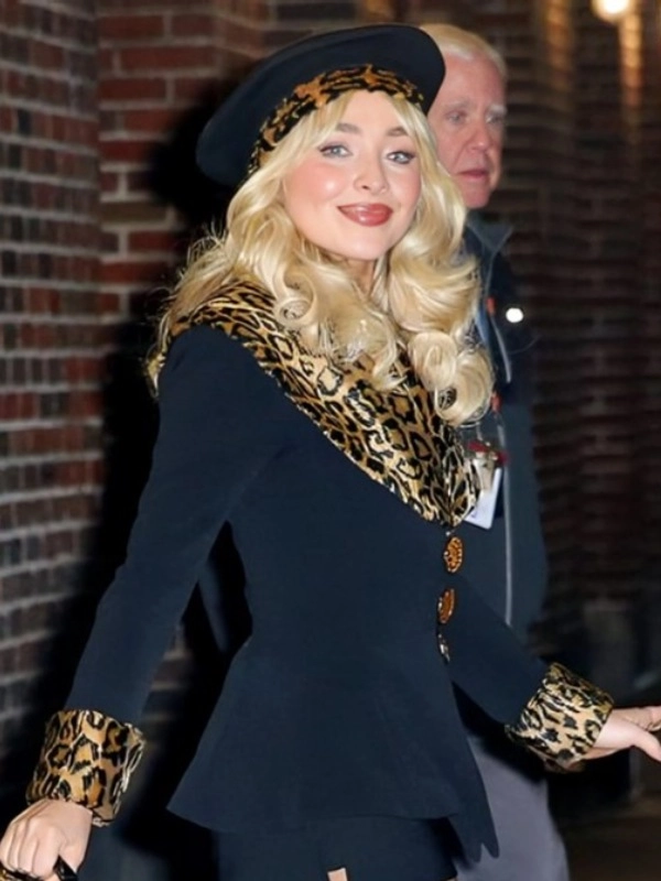American Singer Sabrina Carpenter Leopard Fur Trimmed Wool Blazer