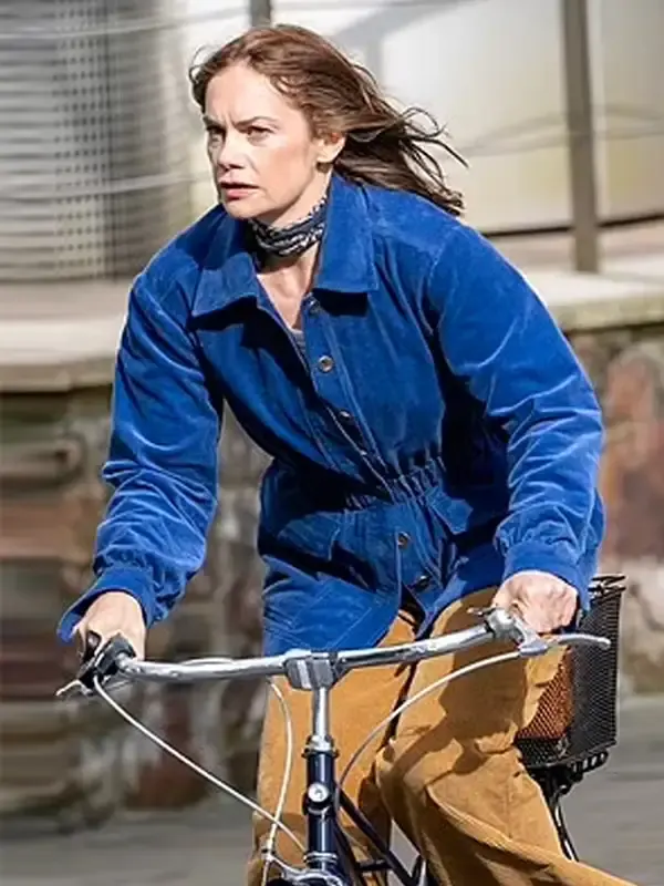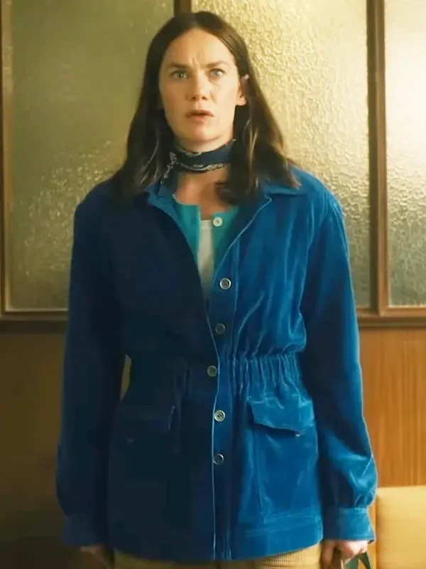 In the movie Down Cemetery Road Sarah Tucker is a woman who had secrets in her past and she goes through the changes of loyalties and the dangers that are hidden. The series is set in a town that is haunted by its past and with every disclosure it brings her face to face with the truths that are more than likely to be left buried. This blue velvet jacket is a reflection of her voyage with the fashionable appeal and the quiet strength. Made from luxurious velvet with soft viscose lining it provides comfortable wear and is a little warm. The long sleeves and buttoned cuffs are for protection from the cold while the shirt style collar and button front are for giving a touch of class. The pockets on the outside as well as on the inside are for putting your things safely. A nice piece to wear at the evening gatherings, during the work nights, or at the dramatic scenes when you are in need of the different appearance.