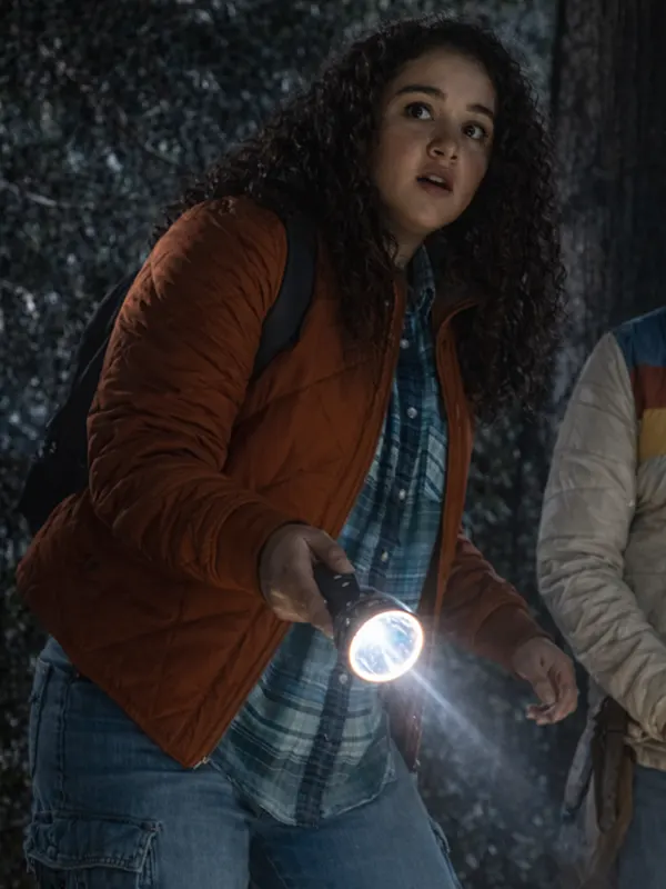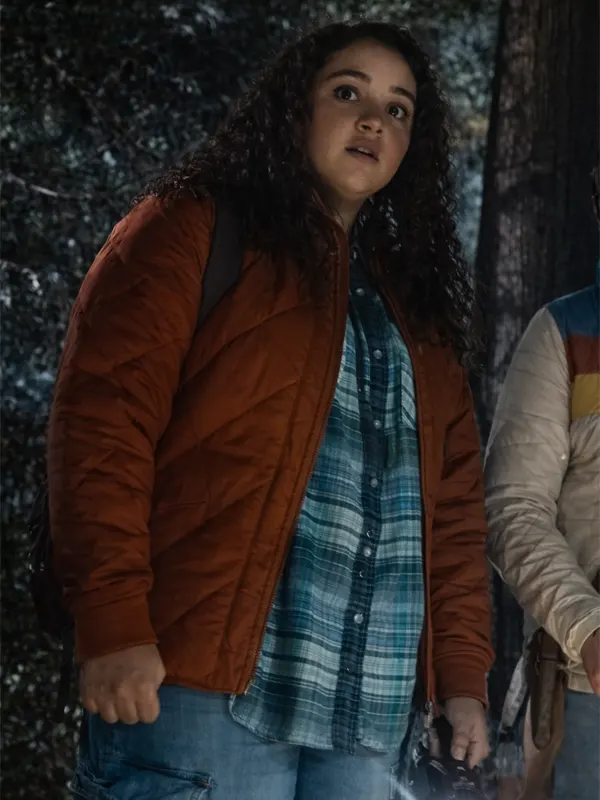 Kiara Pichardo TV Series School Spirits Nicole Herrera Quilted Orange Jacket