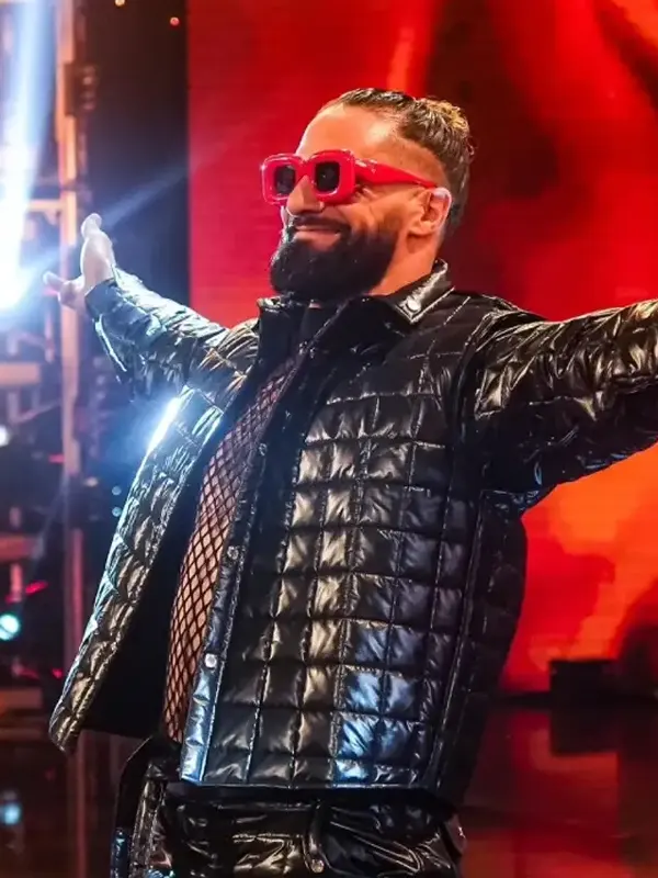 WWE RAW 2023 Seth Rollins Black Quilted Puffer Jacket