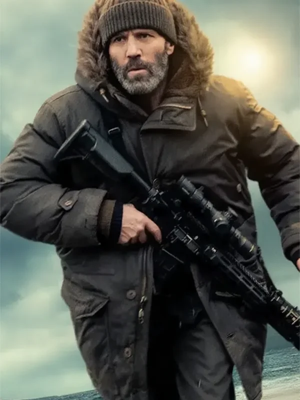 Jason Statham Movie Shelter 2026 Michael Mason Fur Hooded Parka Coat