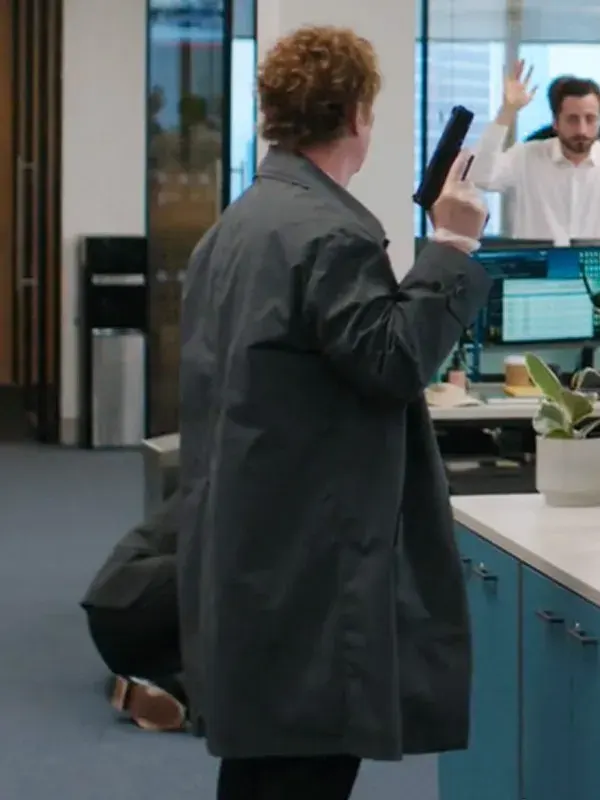 The George Cartwright Grey Coat from the Steal series is crafted using cotton fabric with soft viscose lining, full length sleeves, belted cuffs, shirt style collar, and button closure, featuring two outside pockets and two inside pockets. Worn by George Cartwright in the Steal series, it suits office wear, winter walks, and clean everyday styling.