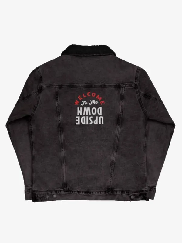 Dive into the Upside Down with this premium Stranger Things Black Sherpa Denim Jacket. Crafted from high-quality denim, it features a cozy black sherpa lining for warmth. The iconic red show logo sits on the chest, while the back boasts a bold graphic. This stylish jacket is the perfect choice for fans seeking comfort and durability.