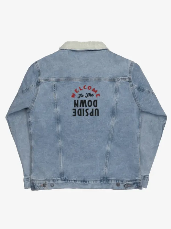 Embrace the mystery of Hawkins with this Stranger Things Sherpa Denim Jacket. Crafted from premium light-wash denim, it features a warm sherpa lining and collar for ultimate comfort. The iconic red logo sits on the chest, while the back displays a bold “Welcome to the Upside Down” graphic. It is a stylish essential for every dedicated fan.