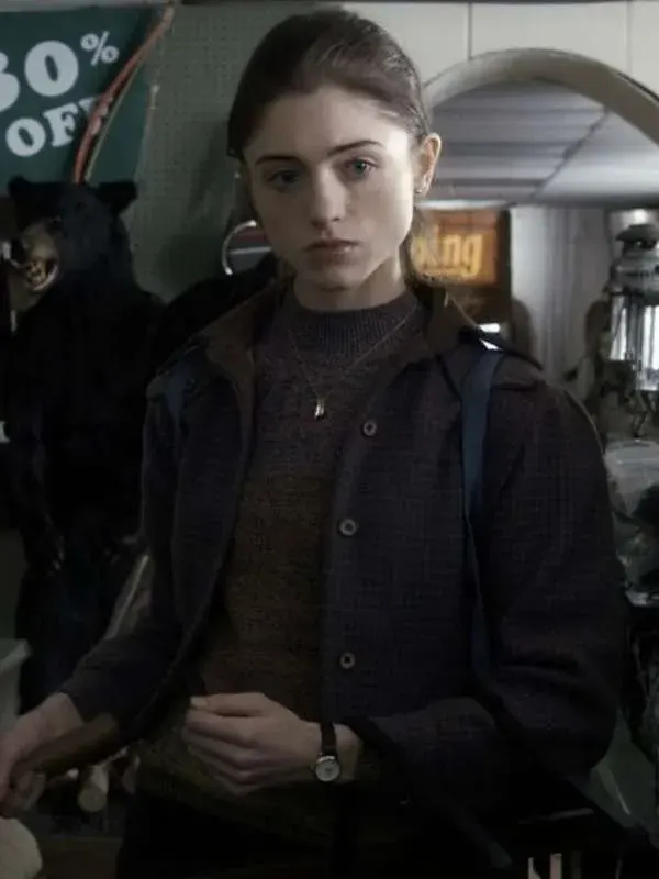 Natalia Dyer TV Series Stranger Things S01 Nancy Wheeler Purple Cropped Wool Jacket