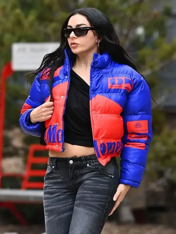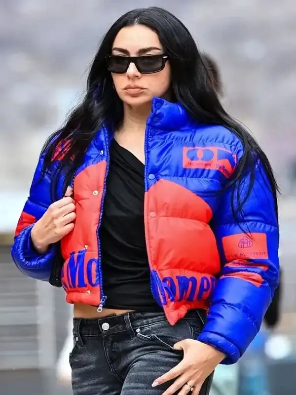 Sundance Film Festival 2026 Charli XCX Blue And Red Puffer Jacket
