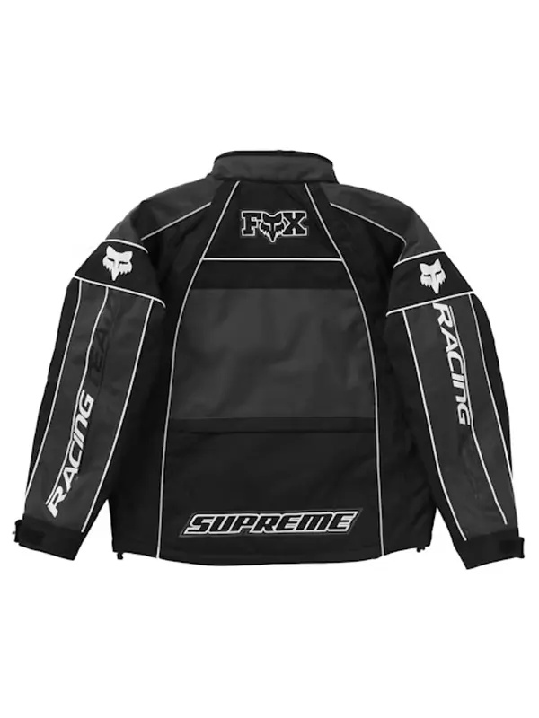 Supreme Black Fox Racing Jacket is built using durable polyester fabric, matched with soft viscose lining, providing full length sleeves, velcro strap cuffs, a hooded collar, zipper closure, two outside pockets, plus one inside pocket. The balanced black and grey tone fits active days, city walks, and weekend plans.