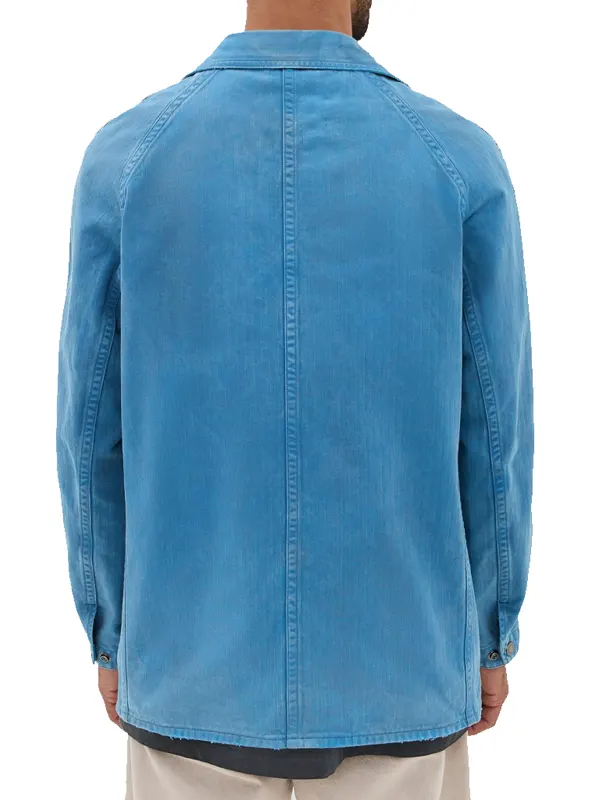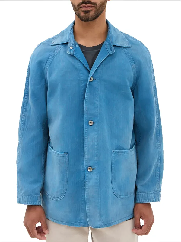 Adopt a rugged yet refined look with this Brad Pitt Blue Jacket from The Adventures of Cliff Booth. Made from high-quality breathable cotton, it features a soft inner lining for comfort. The design includes a classic shirt-style collar, front button closure, and spacious patch pockets, making it the perfect lightweight layer for any casual outing.
