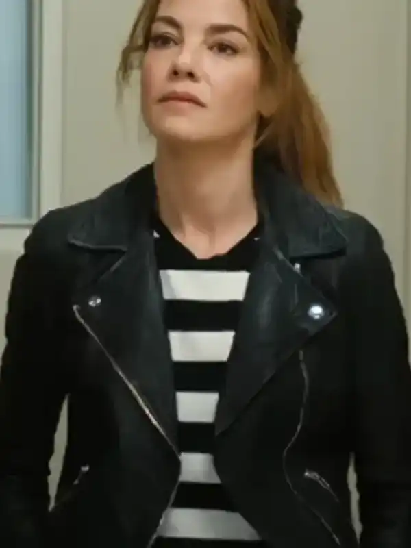 Michelle Monaghan Movie The Family Plan Jessica Morgan Black Leather Jacket