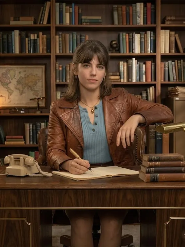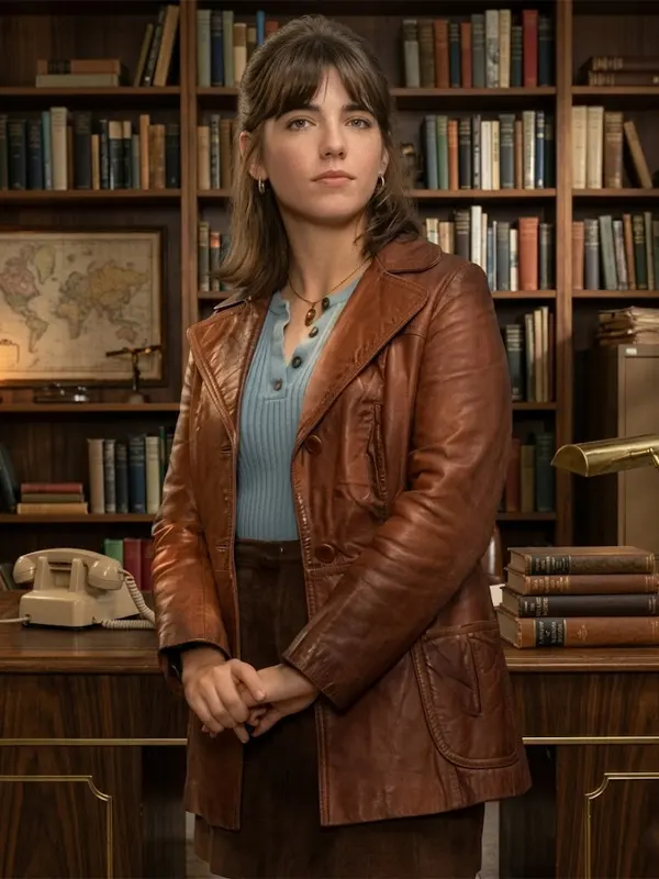 Clara del Valle TV Series The House of the Spirits 2026 Nicole Wallace Brown Leather Blazer