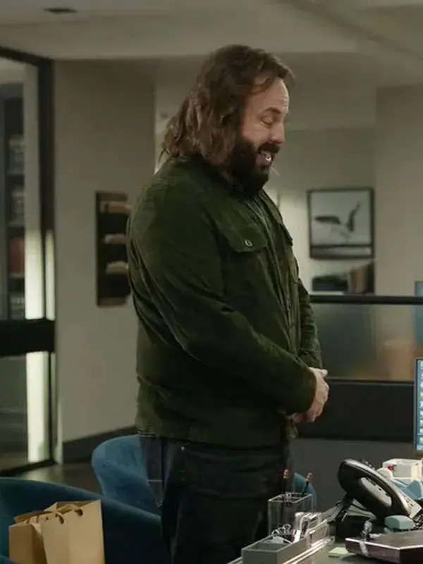 This Angus Sampson Green Jacket from The Lincoln Lawyer series is crafted using suede leather, soft viscose lining, full length sleeves, buttoned cuff, shirt style collar, and button closure, featuring four outside pockets and two inside pockets. It suits investigative scenes and casual outings.