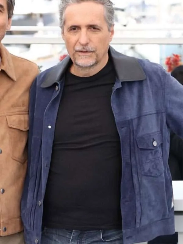 Movie The Secret Agent 2025 Premiere Kleber Mendonça Filho Blue Suede Leather Jacket