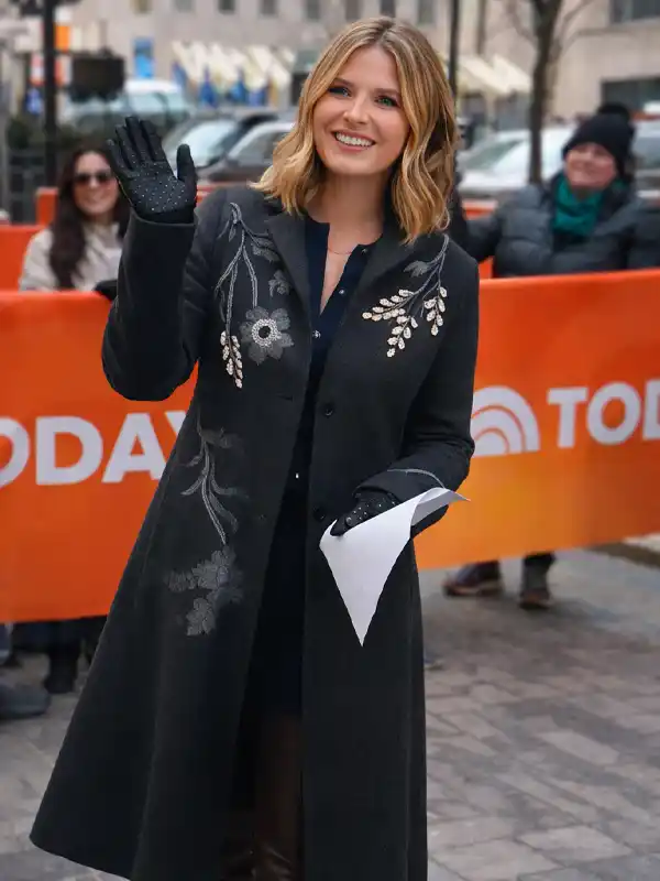 TV Series The Today Show 2026 Jenna Bush Hager Black Wool Floral Embroidery Coat