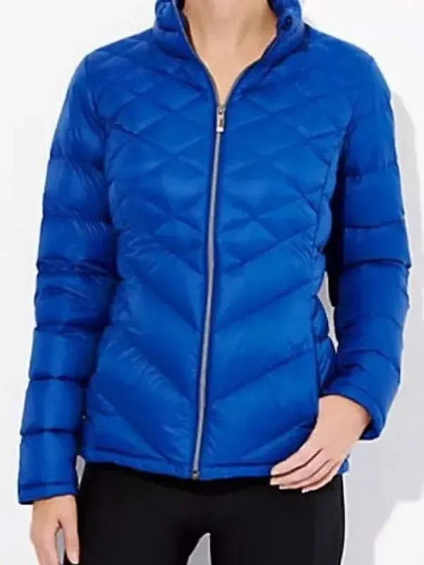 Vicky Nguyen Blue Jacket from The Today Show series is crafted using parachute fabric with soft viscose lining, full length sleeves, rounded cuffs, stand up collar, and zipper closure, featuring two outside pockets and one inside pocket. It is perfect for casual outings, travel, and modern everyday street styling.