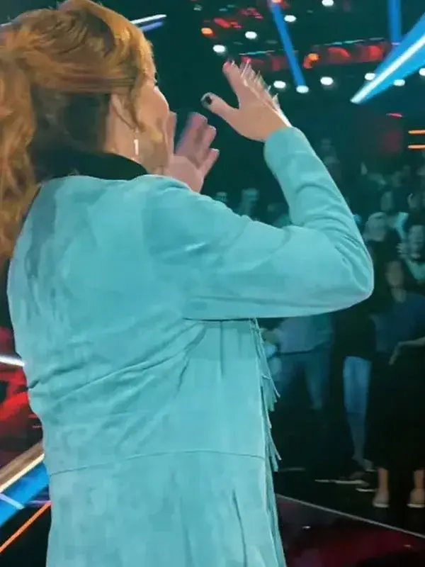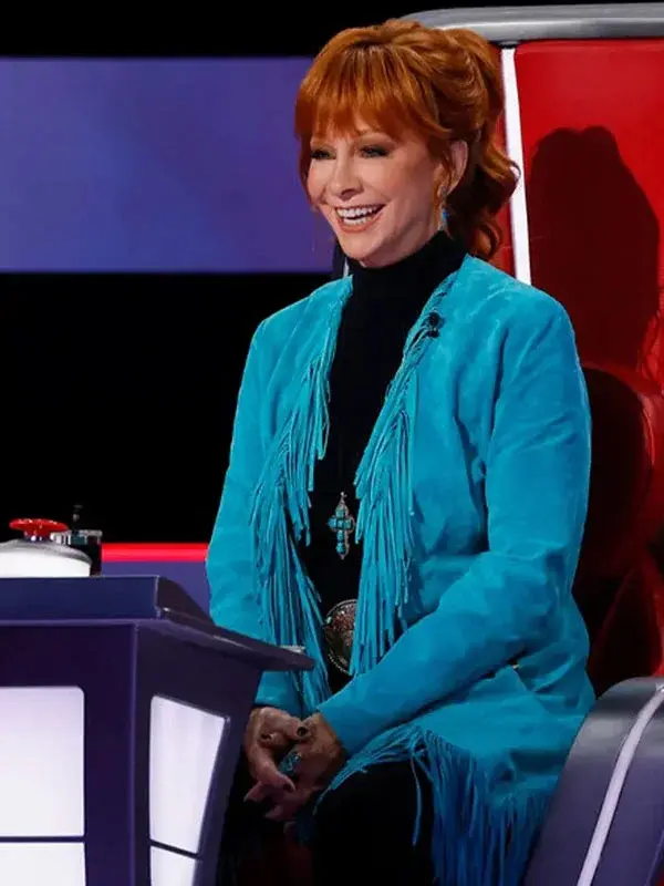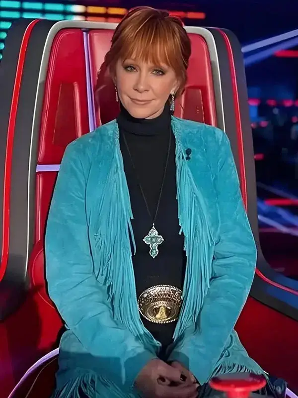 TV Series The Voice Reba McEntire Blue Suede Fringe Long Coat