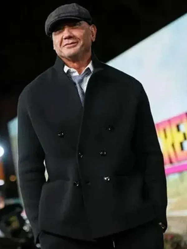 Movie The Wrecking Crew Premiere Dave Bautista Black Wool Peacoat
