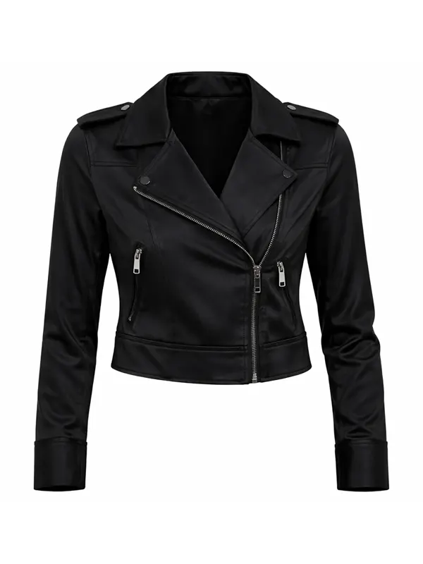Channel the bold energy of Sally Spectra with this stunning black leather jacket from The Young and the Restless Season 53. This cropped biker-style jacket features an asymmetrical front zipper and sleek silver hardware for a modern, edgy look. Perfect for layering over any outfit, it brings a touch of high-fashion drama to your everyday wardrobe.