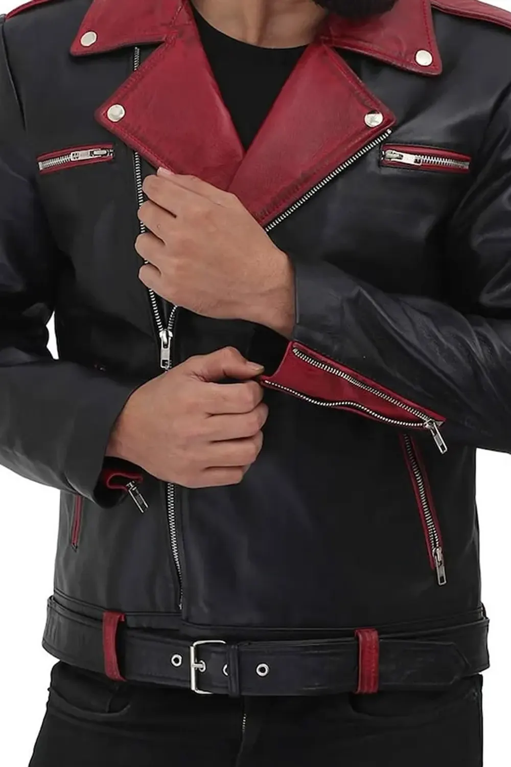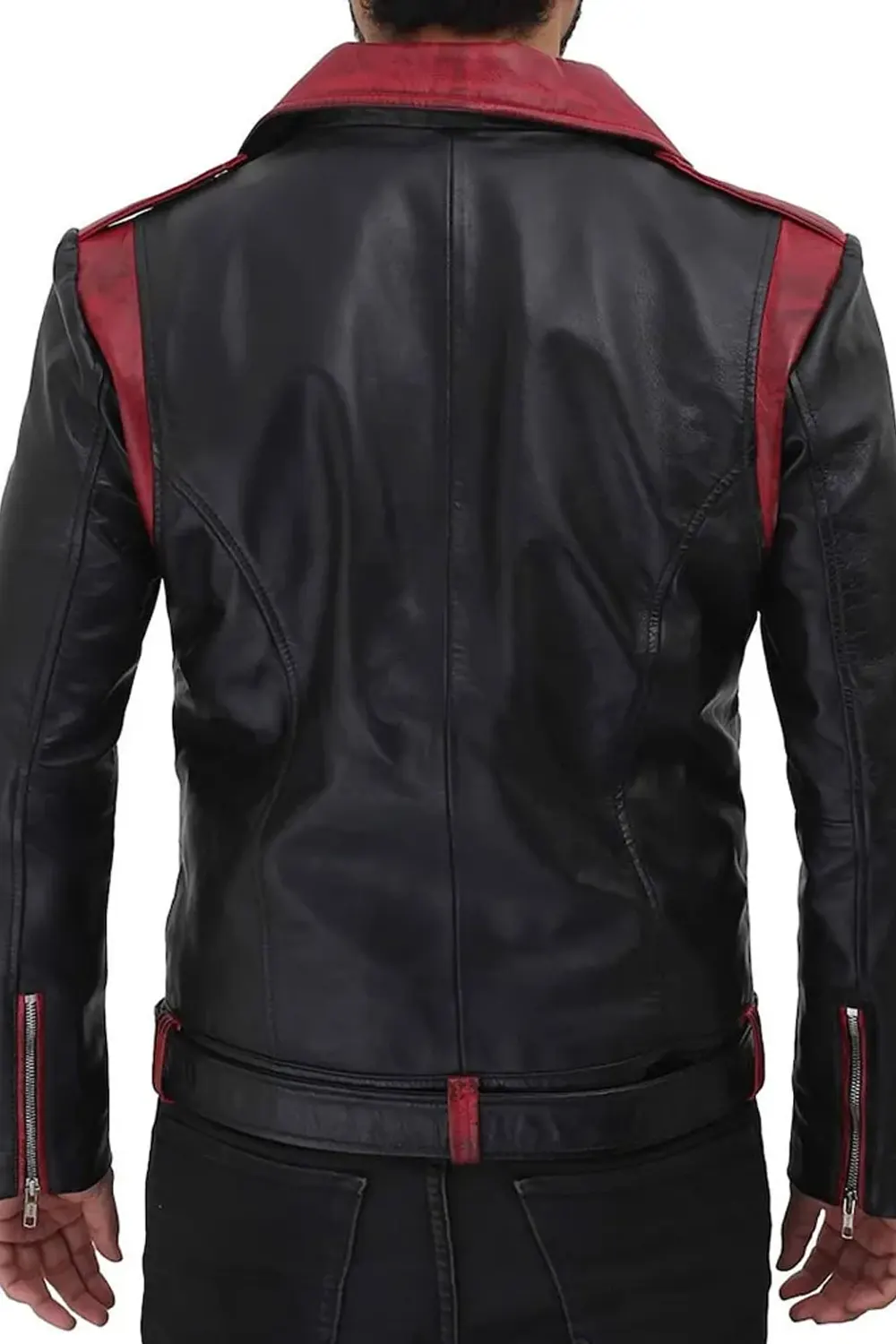 Tommy Doyle Asymmetrical Black and Burgundy Leather Jacket