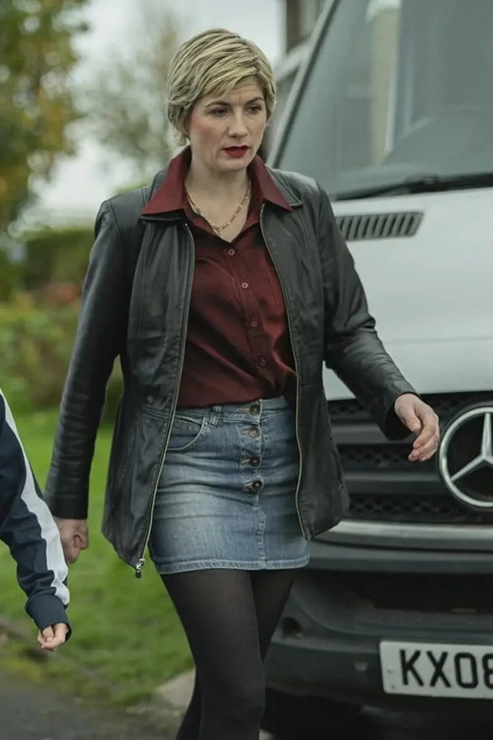 Susan McIntyre TV Series Toxic Town 2025 Jodie Whittaker Black Leather Jacket