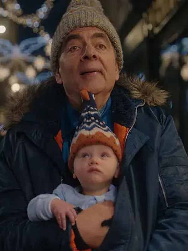 Rowan Atkinson Man vs Baby 2025 Trevor Bingley Blue Fur Hooded Polyester Jacket