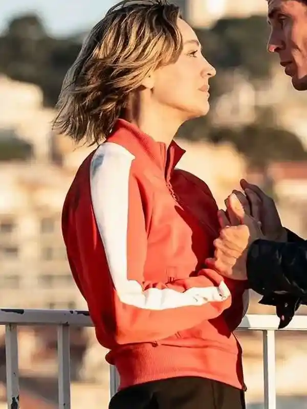 This Alice Monroe Orange Track Jacket from the Vanished series is built using fleece fabric with soft viscose lining, full length sleeves, ribbed cuffs, stand up collar, zipper closure, two outside pockets, and one inside pocket. Worn by Alice Monroe in the Vanished series, it suits casual travel, daily wear, and sporty street looks.