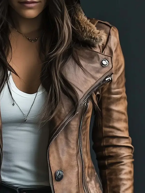 Be the first to review “Vintage Fur Collar Leather Coat”