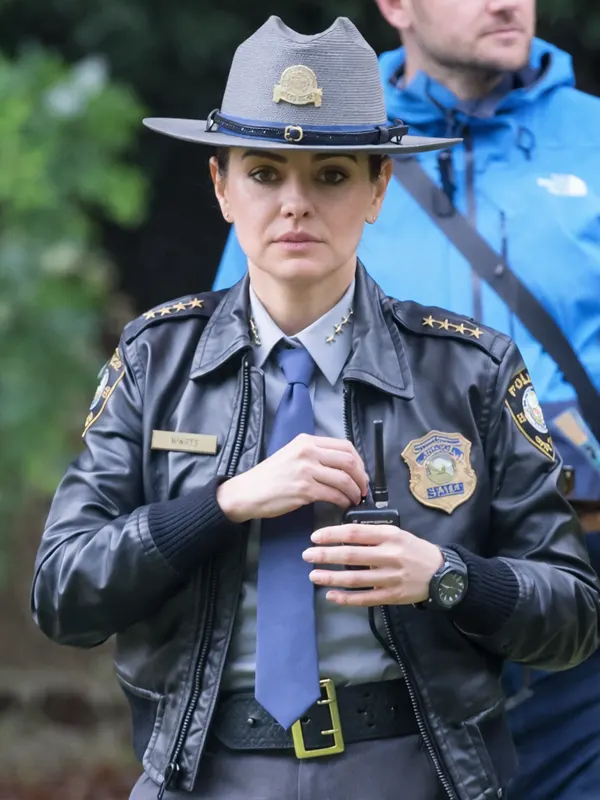 Channel authoritative style with this Wake Up Dead Man Mila Kunis Black Leather Jacket. Inspired by her bold character, this jacket is crafted from high-quality leather with a comfortable inner lining. It features a traditional shirt-style collar, secure zipper closure, and authentic police-style patches, making it a standout piece for fans and fashion enthusiasts alike.