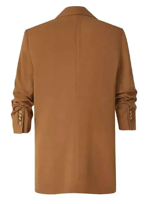 The Sasha Lubbock Brown Blazer from the Watson series is designed using suiting fabric, soft viscose lining, full length sleeves, buttoned cuff, lapel style collar, and button closure, featuring three outside pockets and two inside pockets. It is perfect for business meetings and formal occasions.
