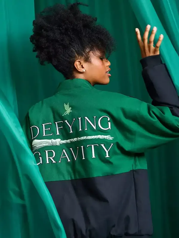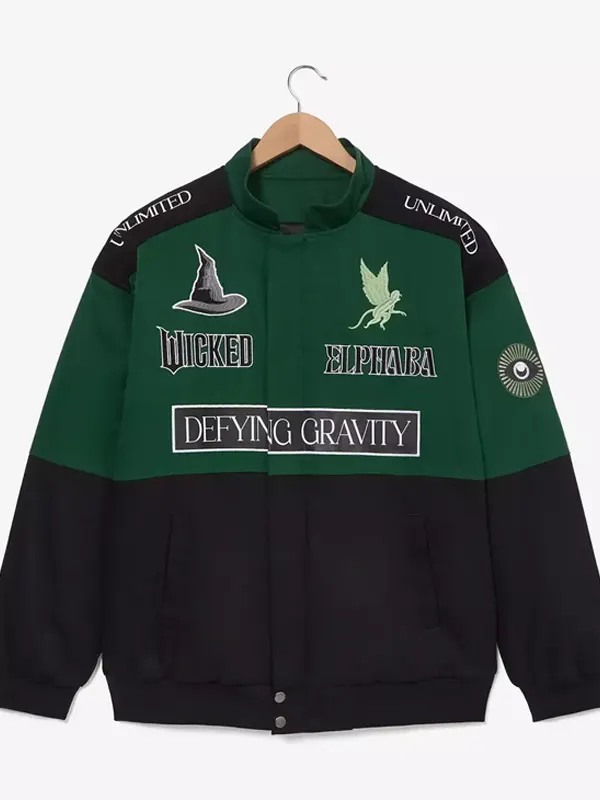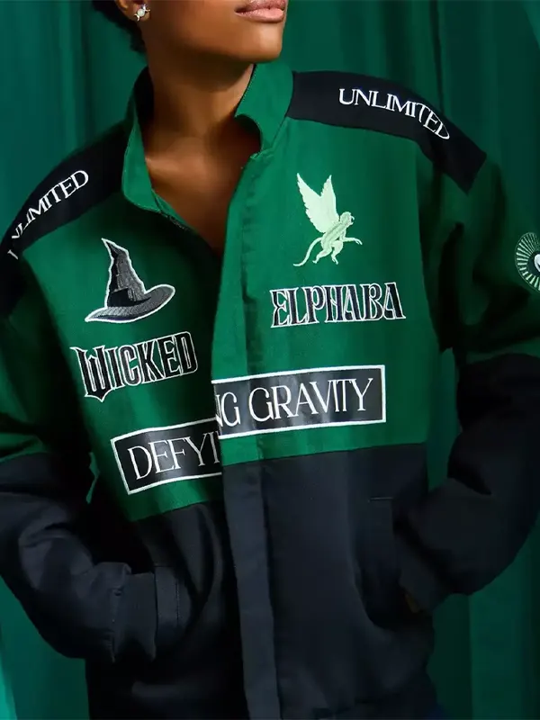 Wicked Elphaba Defying Gravity Racing Green And Black Bomber Jacket