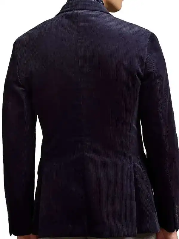 Worn by Ramon Rodriguez in the Will Trent series, this blue blazer is designed using corduroy fabric, soft viscose lining, full length sleeves, buttoned cuff, lapel style collar, and button closure, featuring three outside pockets and two inside pockets. It suits formal wear, smart outfits, and stylish everyday fashion.