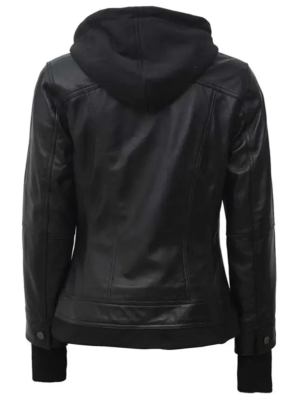 Women Black Leather Hooded Jacket​