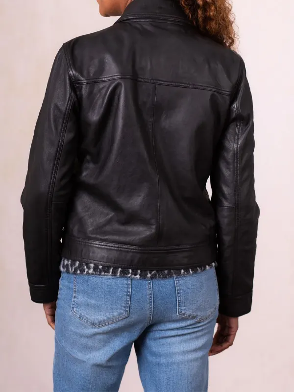 Women’s Stylish Crosthwaite Collared Black Leather Jacket