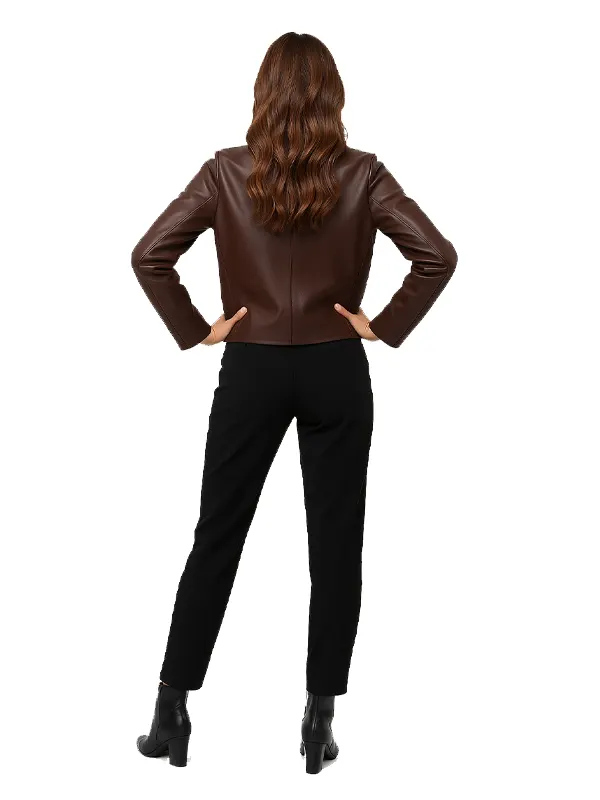 Stylish Women’s Dark Brown Genuine Leather Jacket