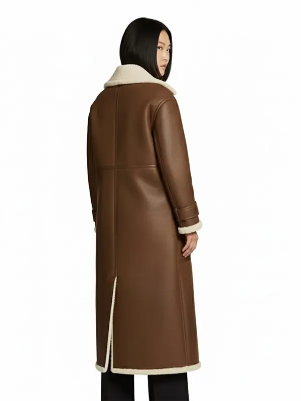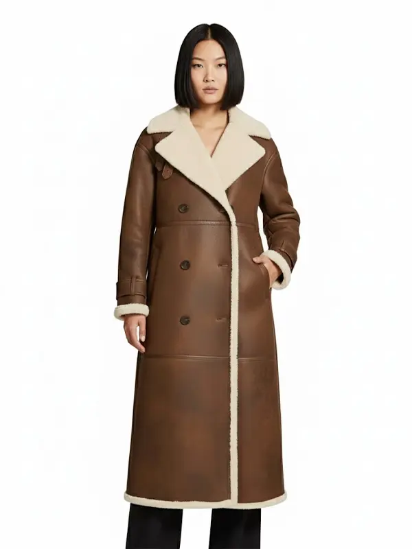 Stylish Women’s Dark Brown Shearling Leather Long Coat