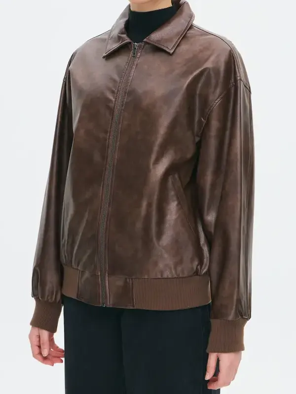 Women’s Bomber Style Faux Leather Jacket