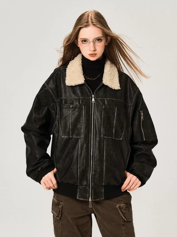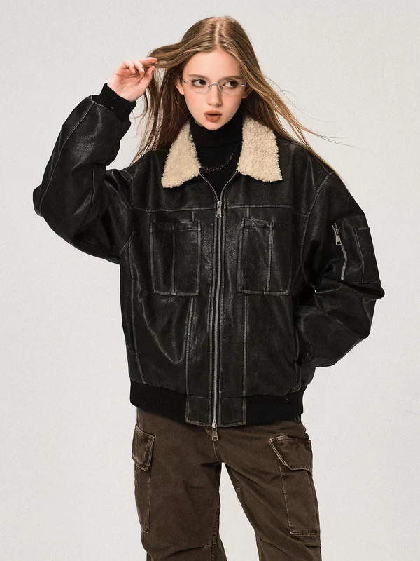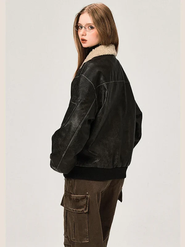 Add some urbane and elevate your wardrobe by purchasing our Women’s Fur Collar Black Bomber Jacket. The jacket craft from pure and genuine leather from animal hide. Also, it has a soft viscose inner lining. Plus, it has a stylish zipper and collar in shirt style. Moreover, there are 6 pockets, 5 outside and 1 inside. Finally, it comes in black color.