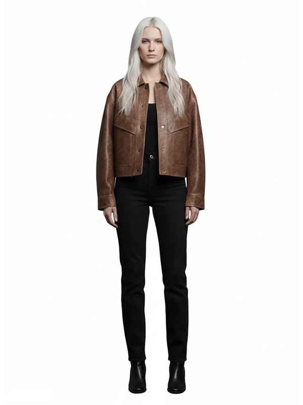 Women’s Hailey Brown Oversized Bomber Leather Jacket