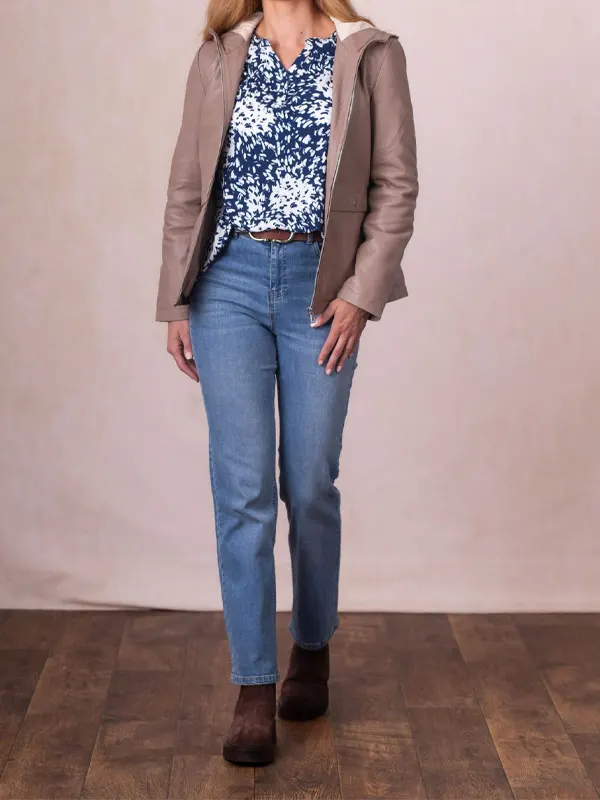 Womens Helton Hooded Leather Jacket