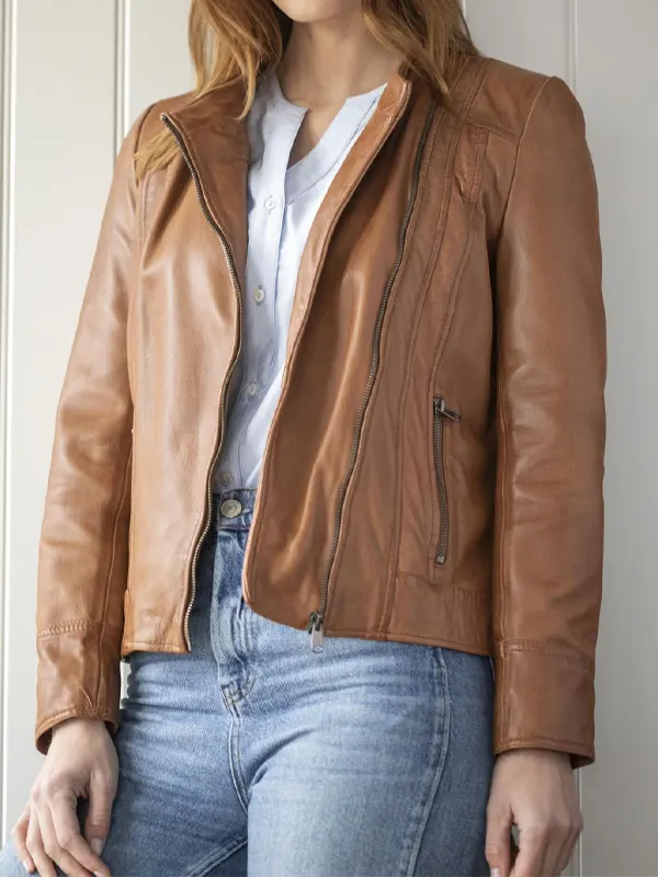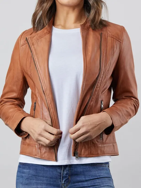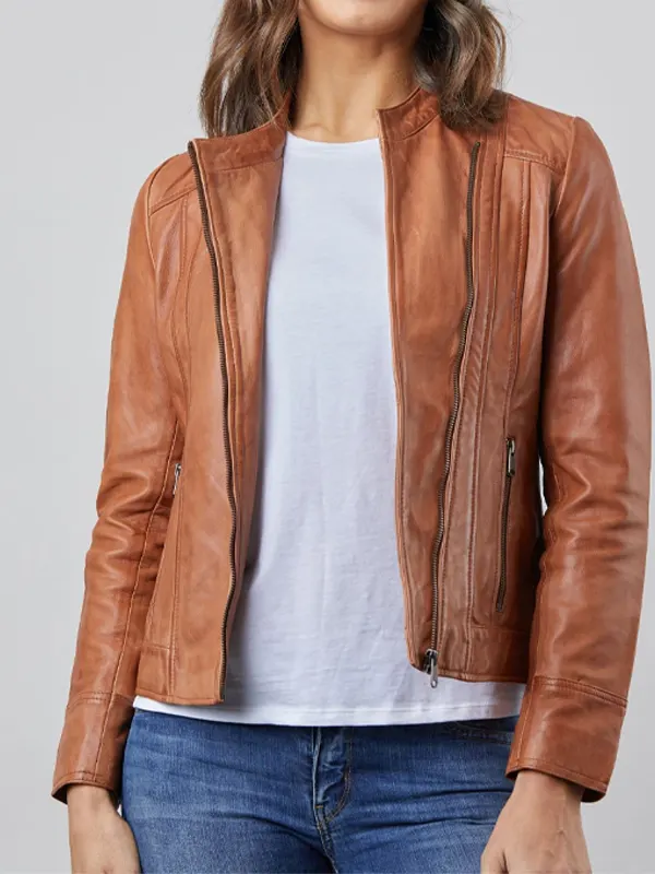 Women’s Stylish Jilly Tan Genuine Leather Jacket