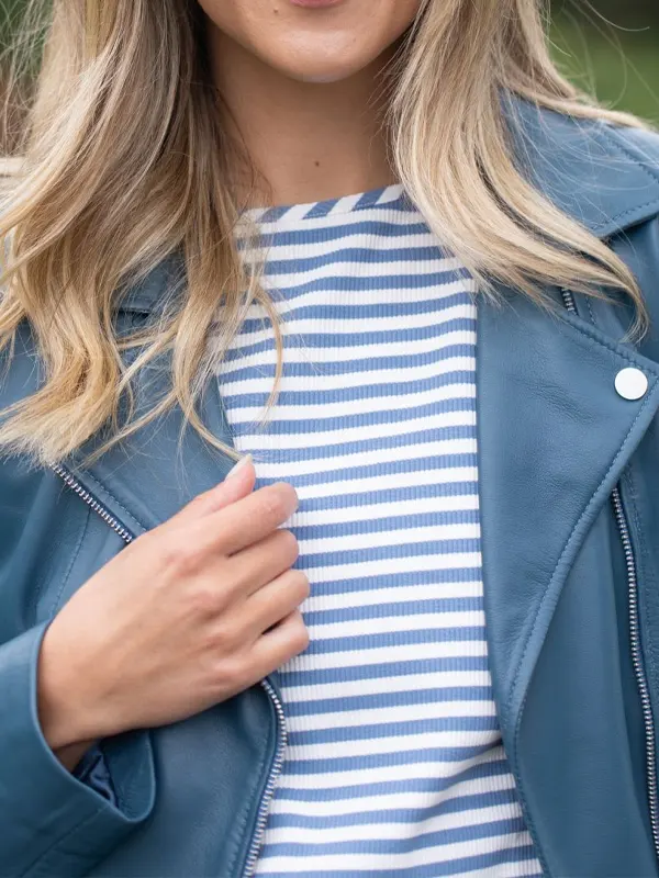 Women’s Stylish Thornhill Blue Leather Biker Jacket