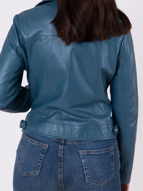 Womens Thornhill Blue Leather Biker Jacket