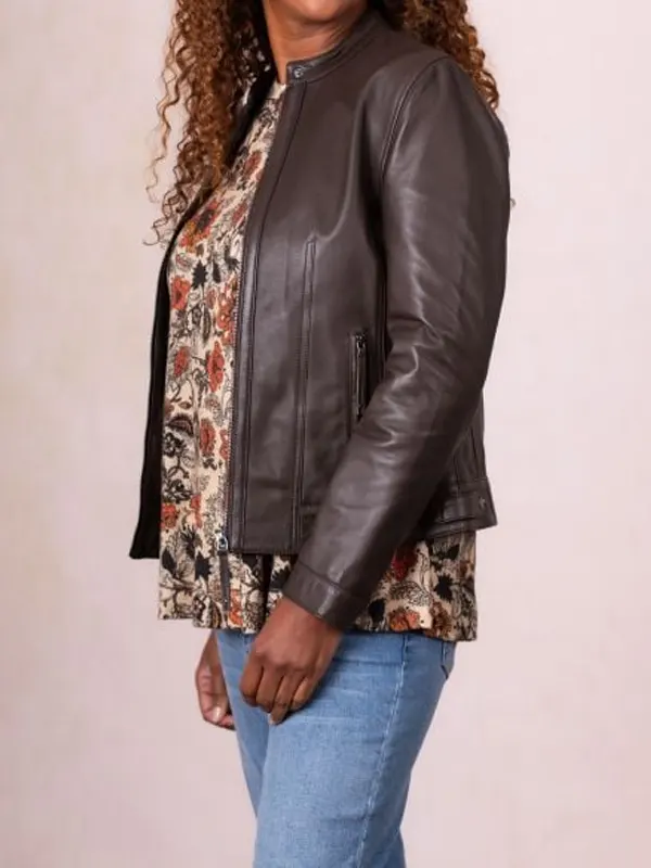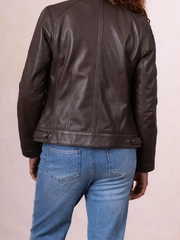 Women’s Stylish Threlkeld Brown Genuine Leather Jacket