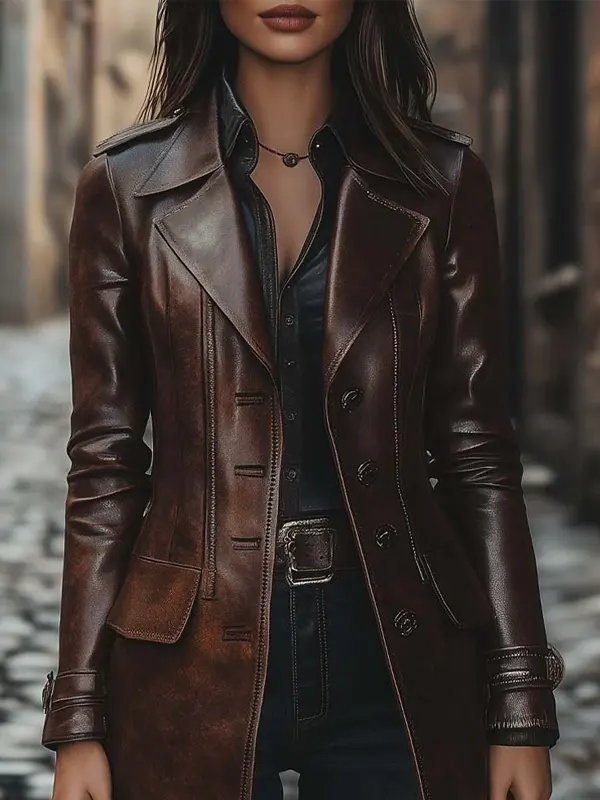 Womens Vintage Leather Brown Jacket