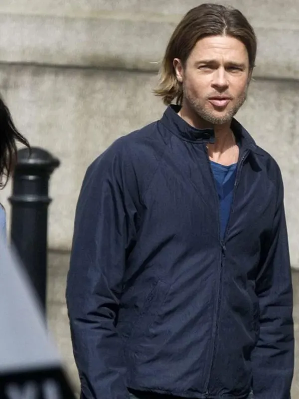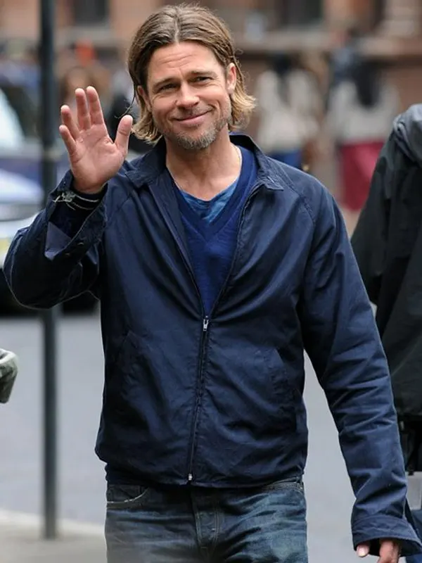 Brad Pitt Movie World War Z Gerry Lane Blue Cotton Jacket