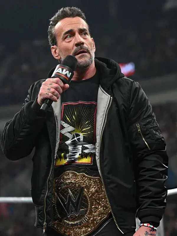 WWE Raw 2026 CM Punk Black Hooded Bomber Jacket