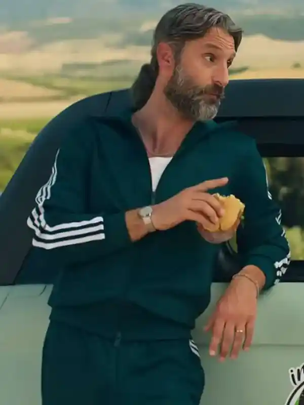 Movie You Me and Tuscany 2026 Marco Calvani White Striped Green Track Jacket